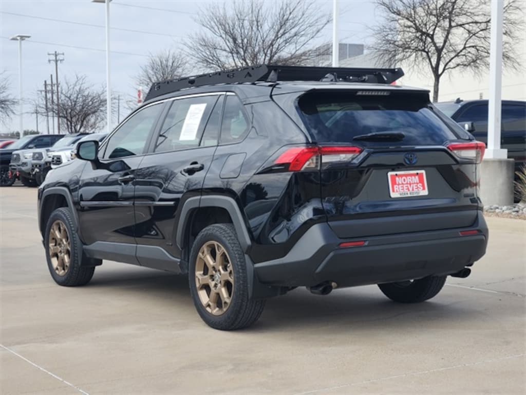 Midnight Black Metallic 2023 Toyota RAV4 Hybrid Woodland Edition MANAGER'S SPECIAL!, One Owner, WON'T LAST!, Well Maintained, CLEAN CARFAX HISTORY, MUST SEE!, Android Auto, Apple Carplay, FULLY SERVICED, AWD. What are you waiting for? Call or come by today! ***For a no hassle buying experience contact the Norm Reeves Toyota Dallas Pre-Owned Sales Department to honor this Special Internet Price. 945-270-8349 ***Our commitment to customer service is our number one priority. We are dedicated to giving our customers the best internet buying experience possible. Our primary concern is the satisfaction of our customers. Need to trade up? Great, schedule your test drive appointment today & have your car quickly evaluated while you're. Certified. Odometer is 3447 miles below market average! 38/35 City/Highway MPG AWD