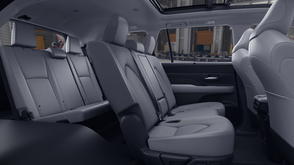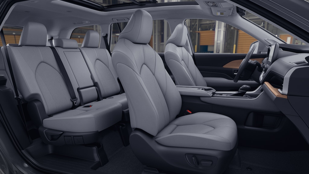 - 7-passenger seating with second-row fold-down captain's chairs and fold-down inboard armrests, adjustable headrests and two cup holders mounted on the floor; and 60/40 split, fold-down third-row seats with sliding headrests and recline function.