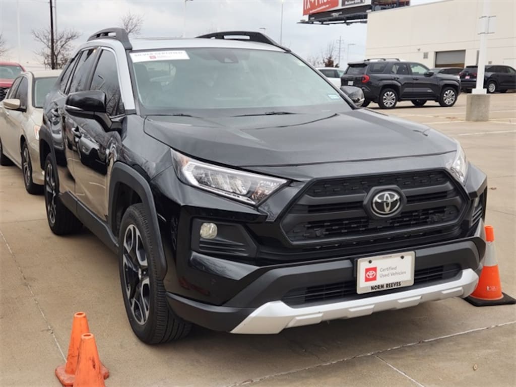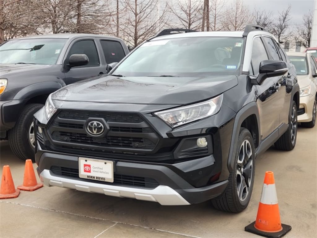 Recent Arrival! Midnight Black 2019 Toyota RAV4 Adventure What are you waiting for? Call or come by today! ***For a no hassle buying experience contact the Norm Reeves Toyota Dallas Pre-Owned Sales Department to honor this Special Internet Price. 945-270-8349 ***Our commitment to customer service is our number one priority. We are dedicated to giving our customers the best internet buying experience possible. Our primary concern is the satisfaction of our customers. Need to trade up? Great, schedule your test drive appointment today & have your car quickly evaluated while you're. Certified. Odometer is 9856 miles below market average! 25/33 City/Highway MPG AWD
