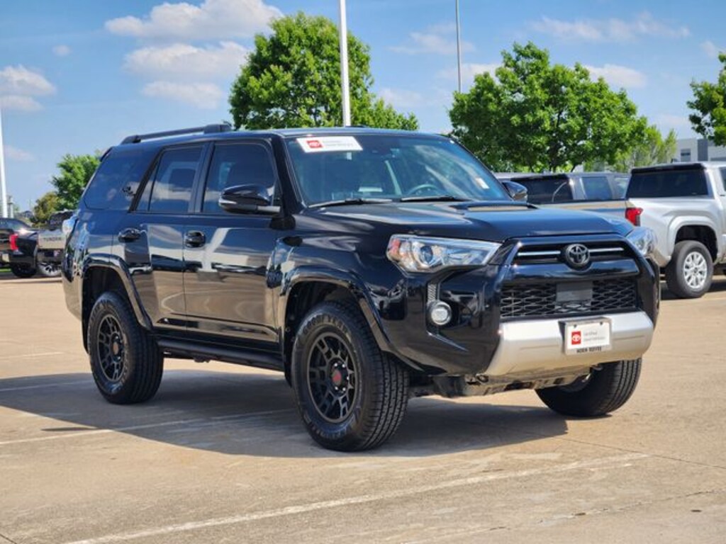 Recent Arrival! Midnight Black Metallic 2022 Toyota 4Runner TRD Off-Road Premium MANAGER'S SPECIAL!, One Owner, WON'T LAST!, Well Maintained, MUST SEE!, Leather, Sunroof, Android Auto, Apple Carplay, FULLY SERVICED, 4x4. What are you waiting for? Call or come by today! ***For a no hassle buying experience contact the Norm Reeves Toyota Dallas Pre-Owned Sales Department to honor this Special Internet Price. 945-270-8349 ***Our commitment to customer service is our number one priority. We are dedicated to giving our customers the best internet buying experience possible. Our primary concern is the satisfaction of our customers. Need to trade up? Great, schedule your test drive appointment today & have your car quickly evaluated while you're. Certified. Odometer is 8142 miles below market average! 4WD